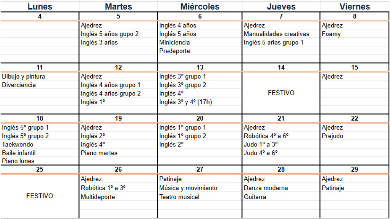 - Deberéis dirigiros directamente al aula donde se imparte la extraescolar.