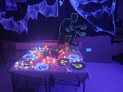 El colegio nos pidió colaboración para montar un pasaje del terror, abierto desde Infantil 5 años hasta 6º de Primaria. La actividad fue todo un éxito y recibió el aplauso de profesorado, equipo directivo y alumnado.