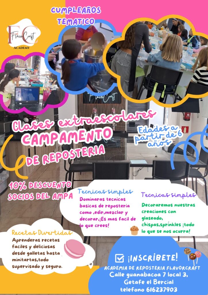 Gracias a nuestro acuerdo con Flavor Craft, la academia de repostería creativa de El Bercial, los socios de la AMPA pueden disfrutar de descuentos y sorpresas deliciosas: