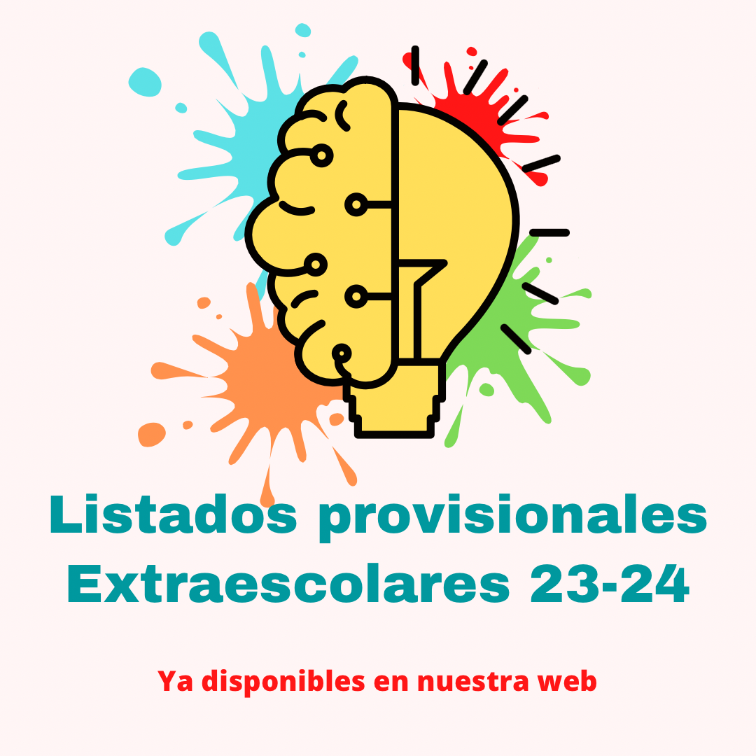 Podéis consultar los listados provisionales para las extraescolares del próximo curso 2023-24 en los siguientes enlaces: Os recordamos que el plazo de revisión para resolver cualquier incidencia con las empresas …